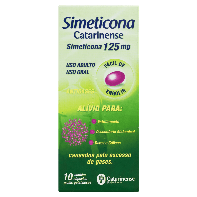 Simeticona Catarinense 125mg em cápsulas gelatinosas é um medicamento eficaz para o alívio rápido dos sintomas causados pelo excesso de gases no aparelho digestivo, como estufamento, desconforto abdominal, flatulência e cólicas. Cada cápsula contém 125mg de simeticona, que atua reduzindo a tensão superficial das bolhas de gás, facilitando sua eliminação e proporcionando conforto digestivo em poucos minutos. Ideal para adultos e crianças acima de 12 anos que buscam uma solução prática e segura para o desconforto abdominal.