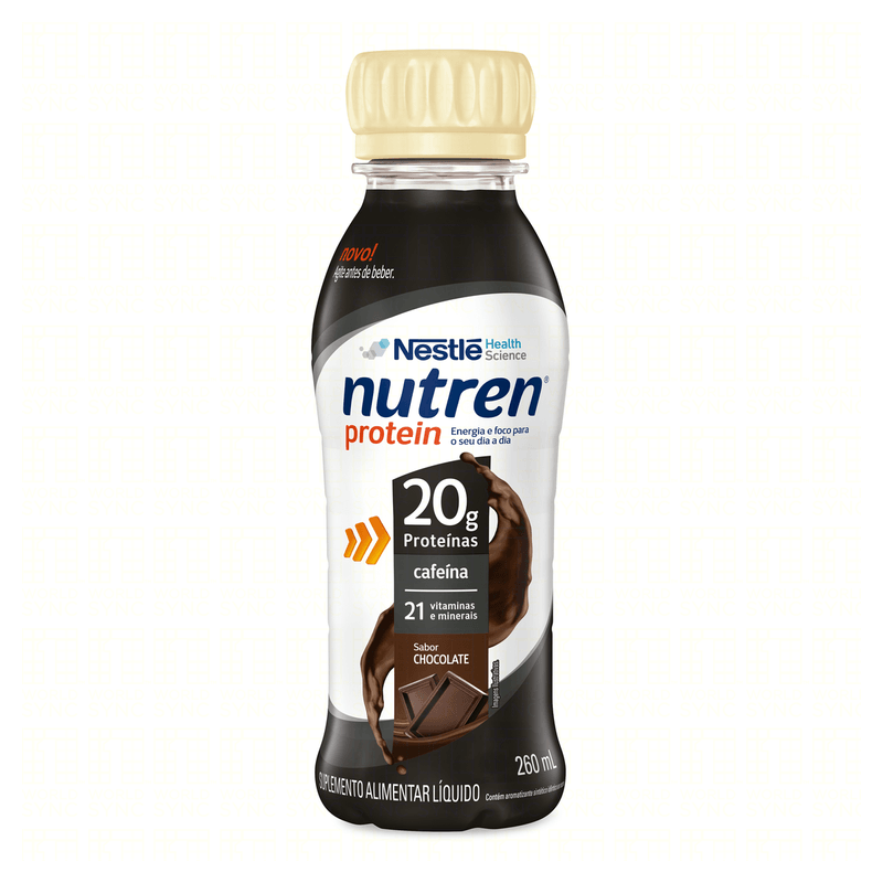 O Suplemento Alimentar Nutren Protein Chocolate é um produto líquido apresentado em garrafa plástica de 260ml, indicado para suplementação proteica e energética, ideal para consumo rápido em rotinas agitadas.