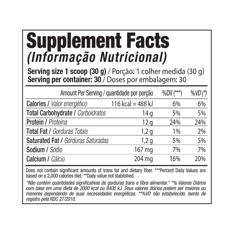 Para consumo, dilua 1 dosador (30g) em 120ml de água gelada ou conforme orientação profissional. Conserve o produto em local seco, fresco e ao abrigo da luz. Após aberto, mantenha o pacote bem fechado para preservar a qualidade. Descarte a embalagem de forma adequada, preferencialmente em locais de coleta seletiva.