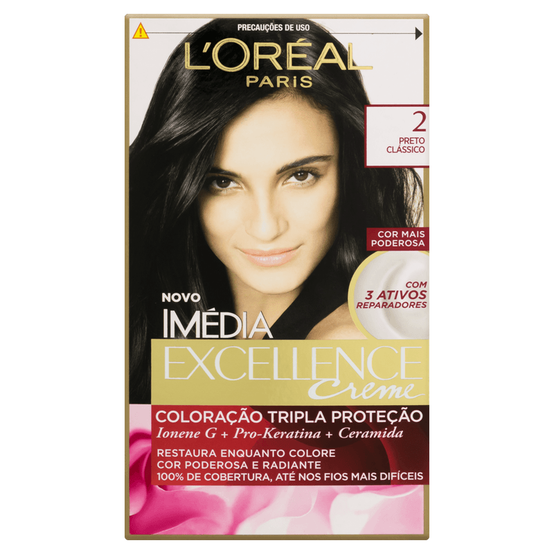 A Coloração Permanente Imedia Excellence 2 Preto Clássico Kit oferece uma coloração rica, viva e de longa duração com 100% de cobertura dos fios brancos. Enriquecida com pro-keratina, proporciona tripla proteção para os cabelos, garantindo fios mais fortes e protegidos durante o processo de coloração.