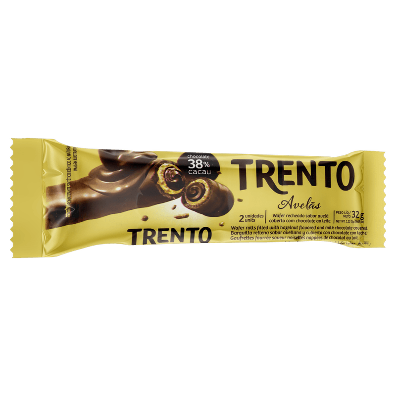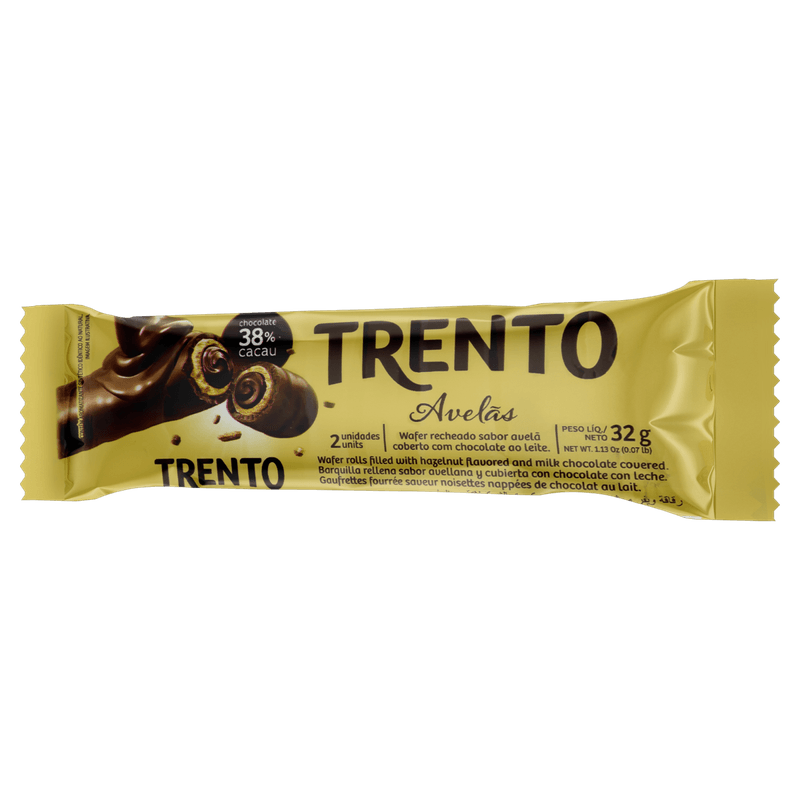 Wafer recheado sabor avelã coberto com chocolate ao leite.